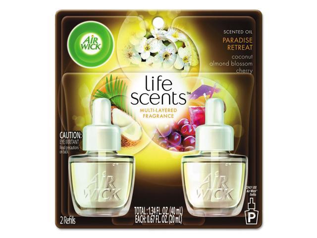 Enhance the aroma of surroundings with this 2-pack of Air Wick Life Scents Paradise Retreat scented oil warmer refills.