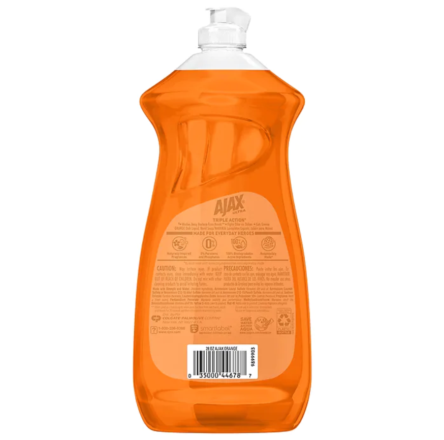 Wash germs from hands, pots and other items with this dish liquid and hand soap. With a refreshing orange scent, this cleaner removes unpleasant odors and replaces them with a burst of citrus, while the strong formula is able to cut through grease and dried food easily. This Ajax triple-action dish liquid and hand soap comes in a 28-ounce container, so you have plenty on hand.
