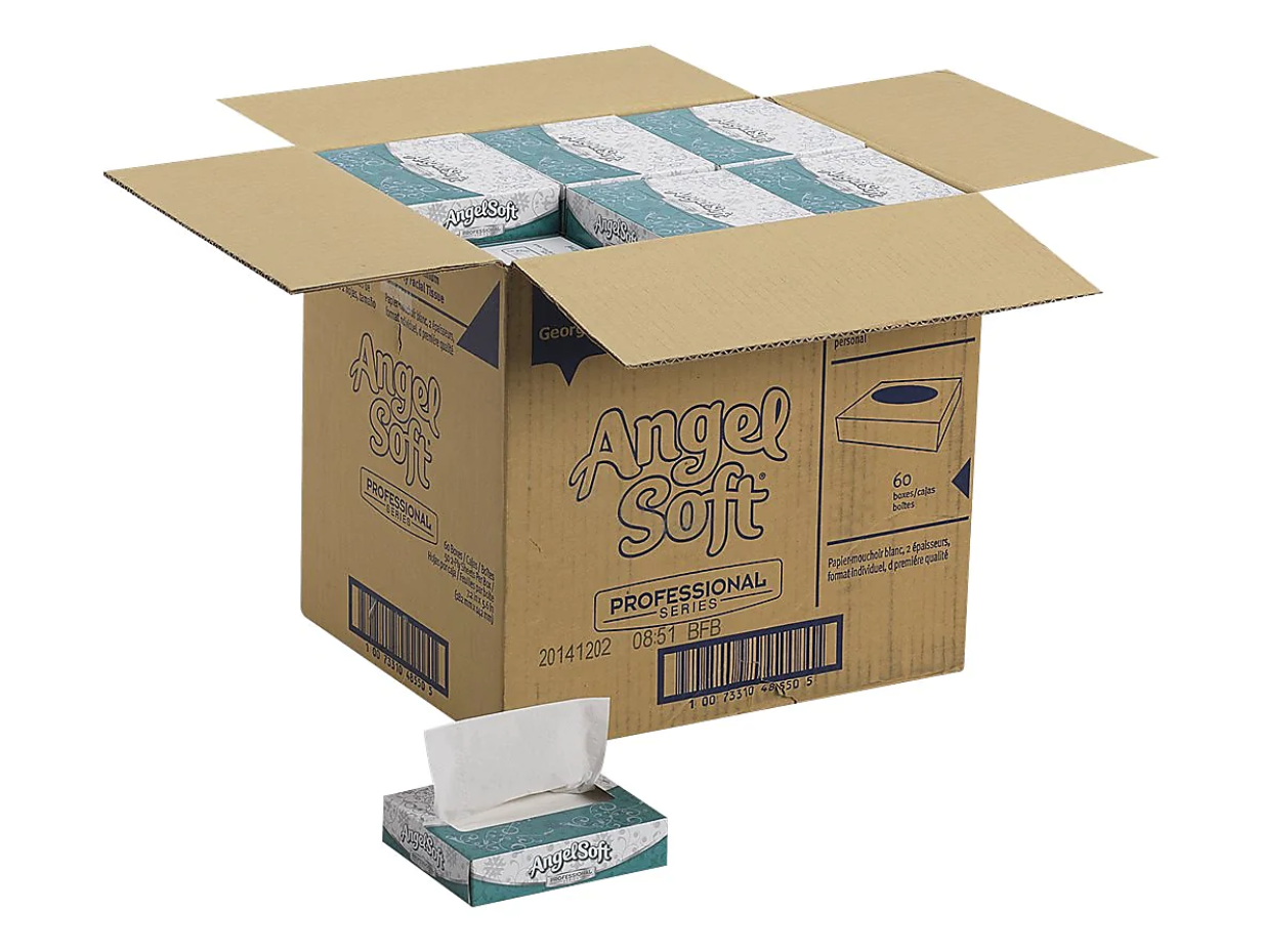 Provide everyone in the office with soft tissue with this pack of 60 boxes of Angel Soft Professional Series facial tissue.