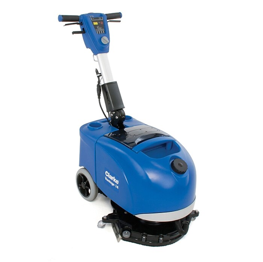 Clarke 14 inch micro-scrubber. The Vantage 14 with a rotating scrub deck comes with a 84 Ah maint-free (AGM) battery, onboard charger and Prolene Brush.