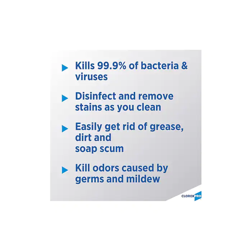 - This spray cleaner, from Clorox Commercial Solutions, has dependable Clorox cleaning power to eliminate surface messes in homes and businesses