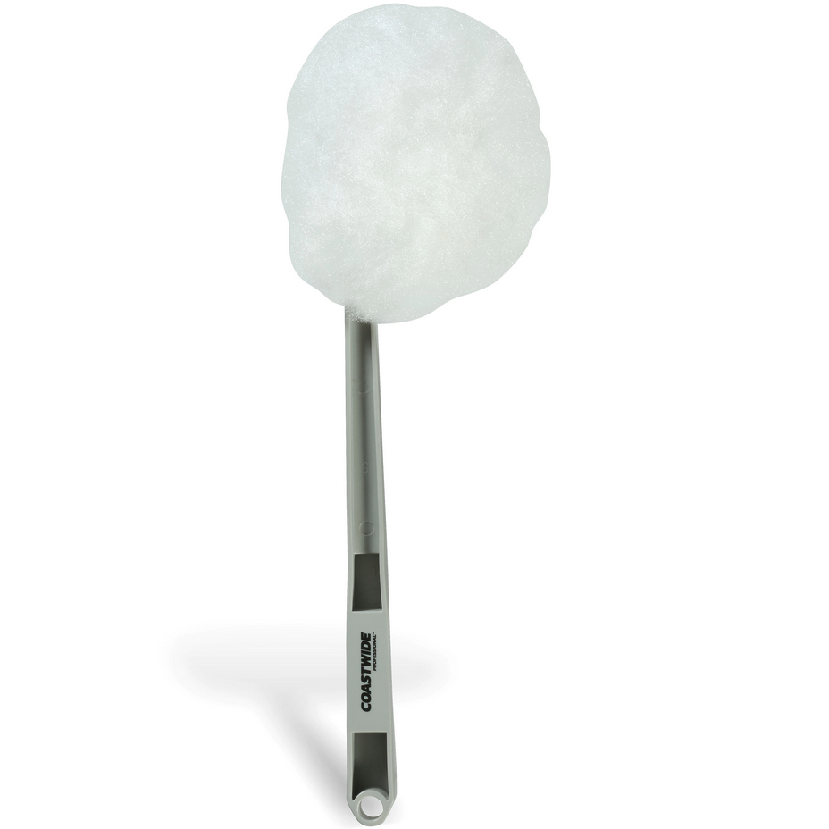 Keep your toilets clean and spotless with this toilet bowl mop. The durable acid-resistant polyester mop head withstands harsh chemicals and cleaning ingredients, while the polyester fibers hold solutions and eliminate the need for separate gel cleaners and bristle brushes. This Coastwide Professional gray toilet bowl mop has an optimized design that can get into hard-to-reach areas for a meticulous clean.