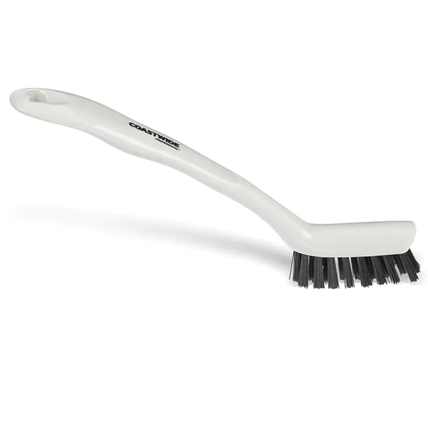 Scrub away dirt and debris from hard-to-reach spaces with this grout brush. The solid molded plastic handle provides a secure yet comfortable grip and is designed to clean efficiently in tight spaces. An integrated hole in the handle makes it easy to hang this Coastwide Professional gray grout brush on a wall hook or janitorial cleaning cart for convenient storage.