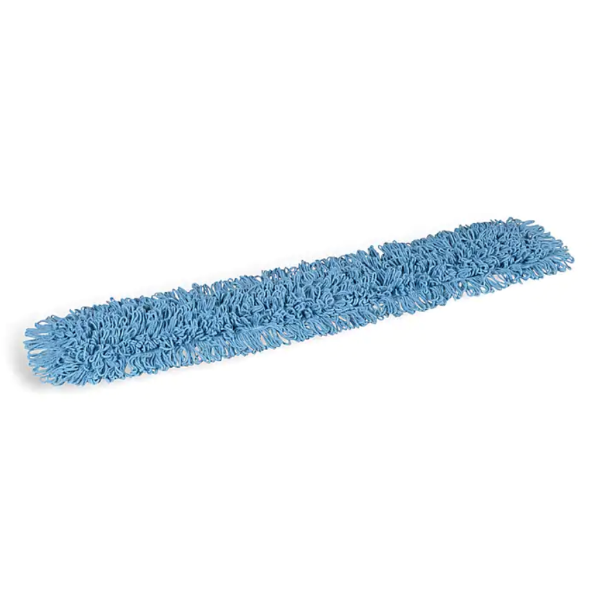 Cover large areas of flooring quickly with this blue dust mop head. The looped ends pick up fine particles, and the cotton construction offers added absorbency for a variety of cleaning tasks. A nonabsorbent polyester backing dries fast and resists mildew for added hygiene. This Coastwide Professional looped-end cotton dust mop head works with Coastwide Professional dust mop handles and frames for hassle-free setup.