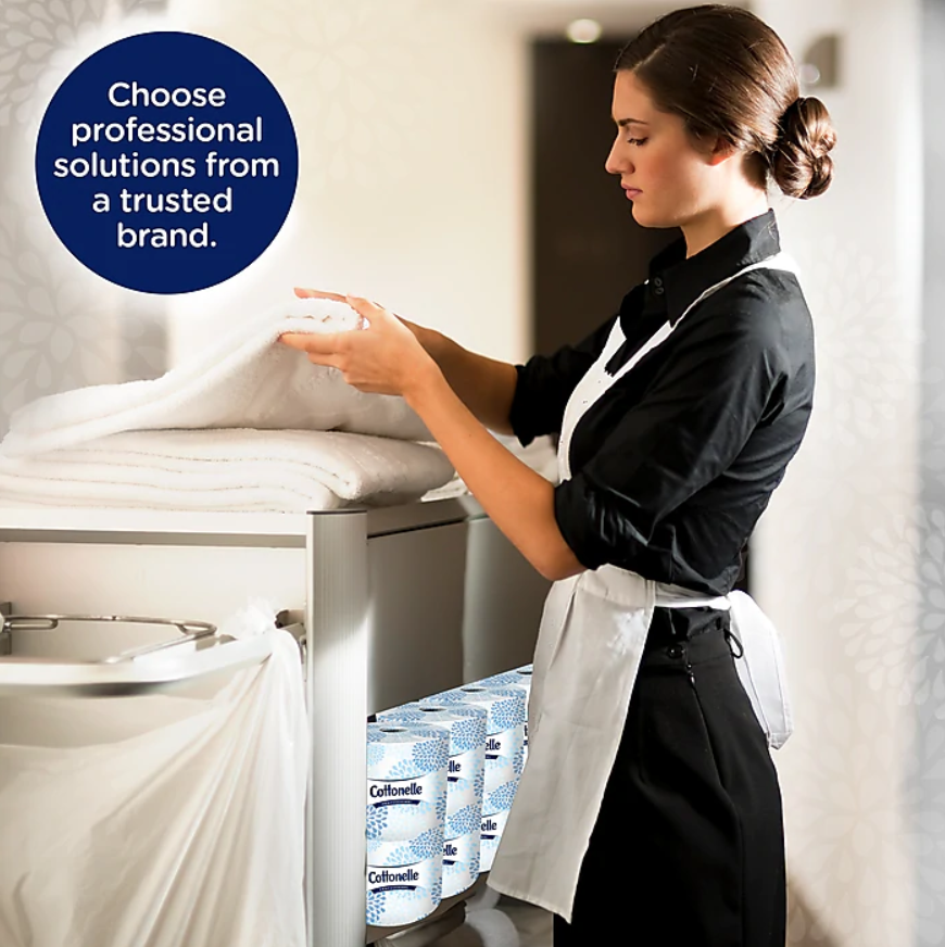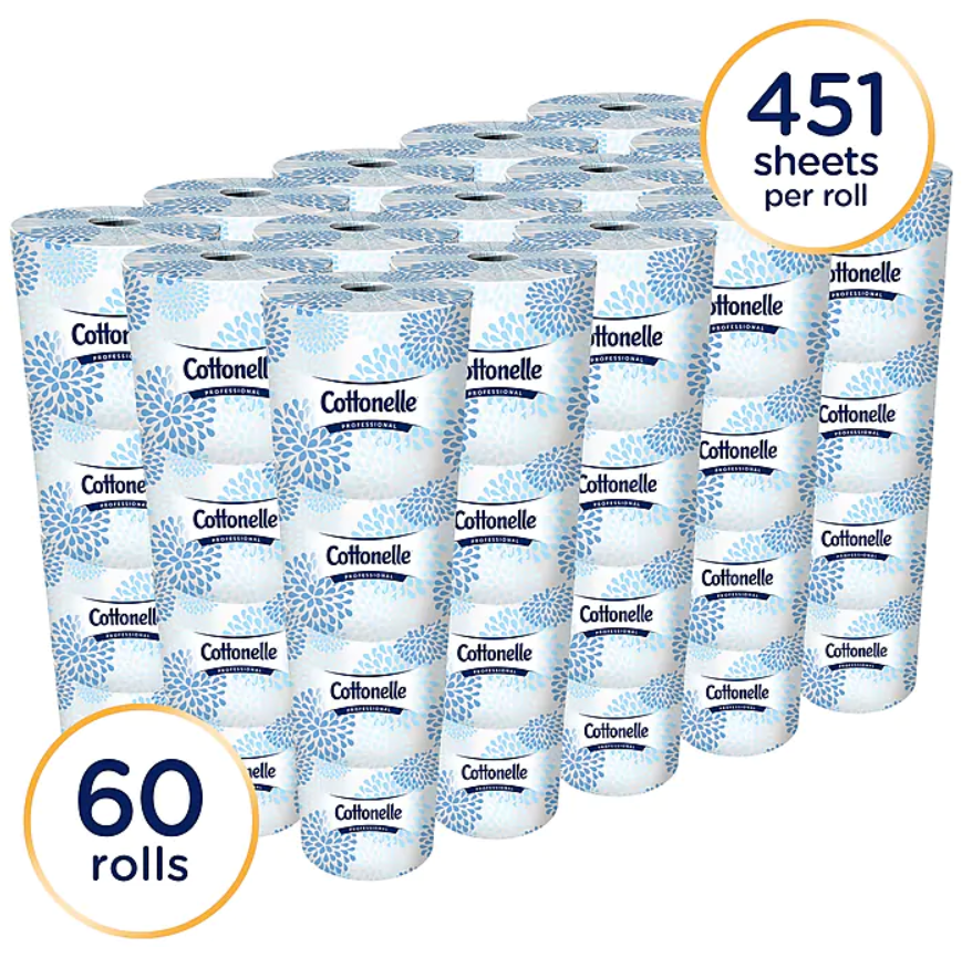 Give office restrooms an upgrade with kleenex Cottonelle bath tissue. Each roll comes individually wrapped for added hygiene and the white color lends a crisp, clean look to restroom stalls. Two-ply construction and a rippled texture combine for added strength and absorbency, giving guests a more comfortable toilet tissue option. This kleenex Cottonelle bath tissue comes in a case of 60 rolls, so you can stock an ample supply in every restroom.