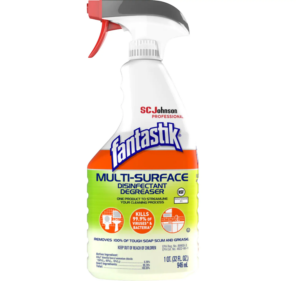 Keep surfaces hygienic and clean with this 32-ounce multi-surface disinfectant degreaser. It kills most of the bacteria that cause the common cold, flu, and influenza A viruses, and the pleasant scent leaves the area smelling fresh. This Fantastik Multi-surface cleaning spray leaves no residue behind and is suitable for multiple surfaces, including kitchen appliances, porcelain, and nonporous ceramic tile.