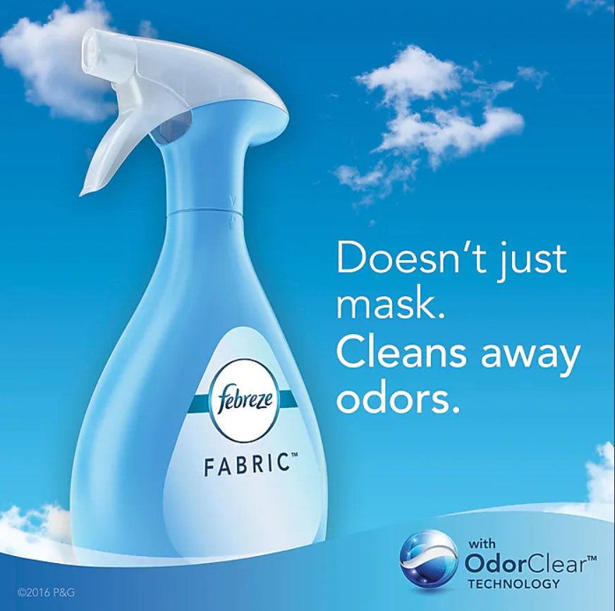 The fine mist works deep in fabrics, cleaning them of common odors such as pet smells, smoke, and body odors, helping to freshen the entire room. Perfect to use weekly on soft surfaces including furniture upholstery and rugs/carpets or simply to give your clothing a needed refresh. Add to your regular cleaning routine for whole-home freshness. With Febreze FABRIC, uplifting freshness is simply a spray away.