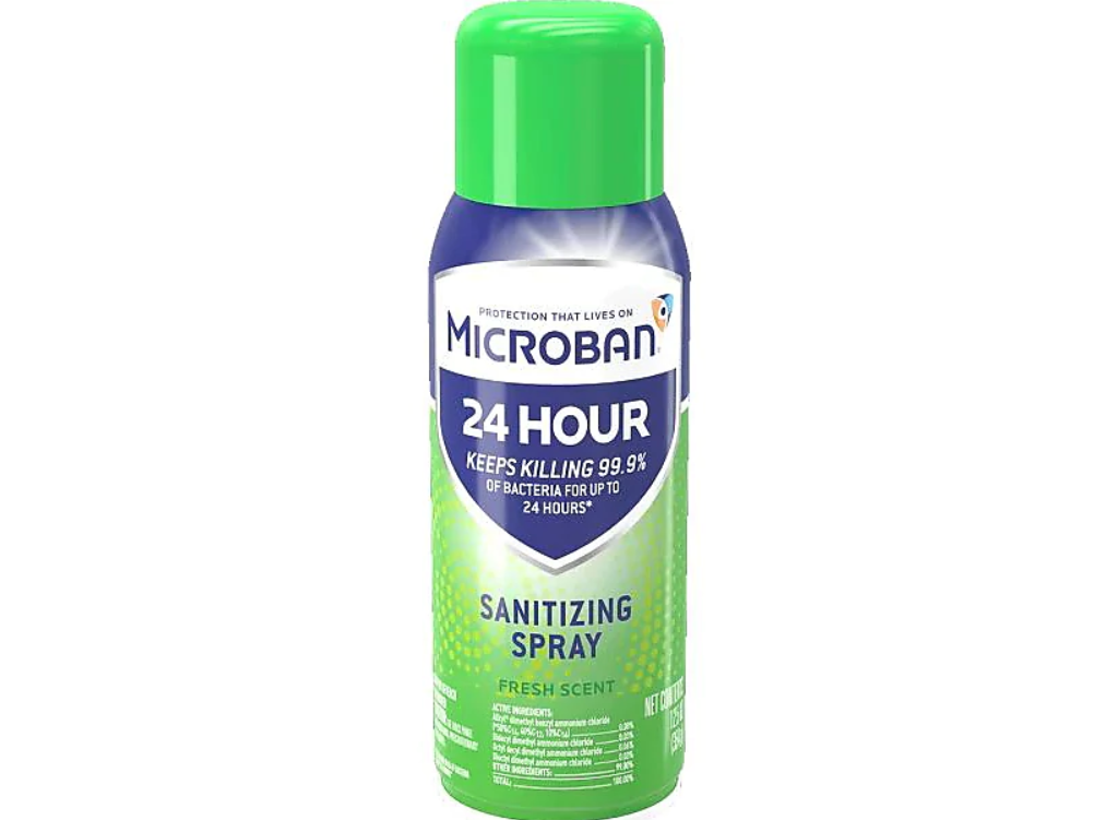 Microban 24 sanitizing spray kills 99.9% of bacteria and continues working throughout the day to provide long-lasting protection for surfaces in your home. This three-in-one cleaner sanitizes for 24 hours; disinfects and eliminates odors. It is also approved to initially kill the virus that causes COVID-19. It can be used on a variety of hard, nonfood contact surfaces such as doorknobs, light switches, and stair railings. Furthermore, it can also be used on soft surfaces such as couches, backpacks, and coats.