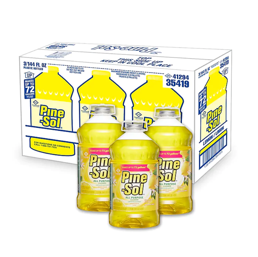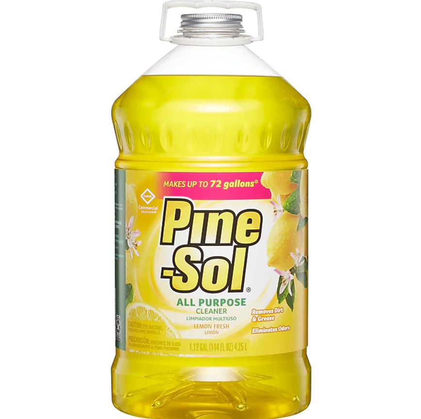 With Pine-Sol Multi-Surface Cleaner, Lemon Fresh Scent you only need one cleaner to fight dirt, grime and grease, while deodorizing most surfaces throughout your home and business. Pine-Sol gives you both a powerful clean and a great smell. It deodorizes leaving a long lasting Lemon Fresh scent. This concentrated formula cleaner can tackle any challenge, just mix Pine-Sol with water at different strengths to adjust your cleaning power each time, unlike premixed cleaners. Pine-Sol Multi-Surface Cleaner is ideal to use on most surfaces including finished hardwood, ceramic tile, linoleum, plastic, carpet and leaves no sticky residue. Ideal for offices, day care centers, schools, hotels, restaurants and other commercial facilities. With the power of Pine-Sol on your side, you only have to clean once to get the job done right. Packaging may vary.