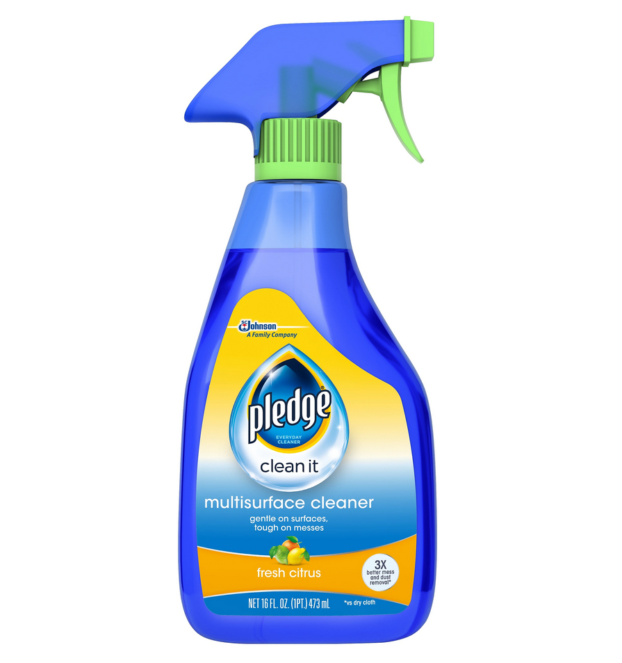 Remove dirt, dust, fingerprints and smudges with this 16-ounce multi-surface cleaner. The easy-to-use design lets you simply spray the targeted area and wipe it clean for high-quality results, while the fresh scent keeps areas smelling great long after the cleaning is finished. This Pledge multi-surface cleaner works on most hard surfaces for maximum cleaning flexibility in office, warehouse or retail environments. Cleans a wide array of surfaces, including wood, wood laminate, marble, granite, plastic, porcelain, and electronics.