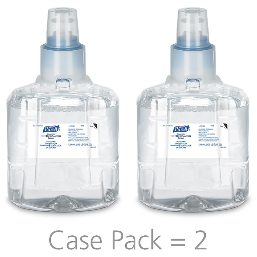 - Case includes: 1-1200 mL PURELL® Advanced Instant Hand Sanitizer Foam Refill, Clear. Each 1200 mL refill holds up to 1300 uses. Compatible with LTX-12 Dispensers. (Dispensers sold separately.)